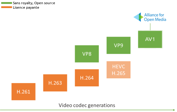 - Contrairement à H.264 et H.265, AV1 est open source et exempt de frais de licence, ce qui le rend attrayant pour les entreprises et développeurs.