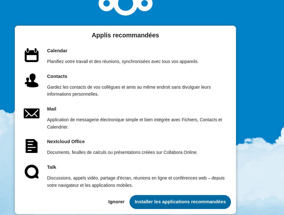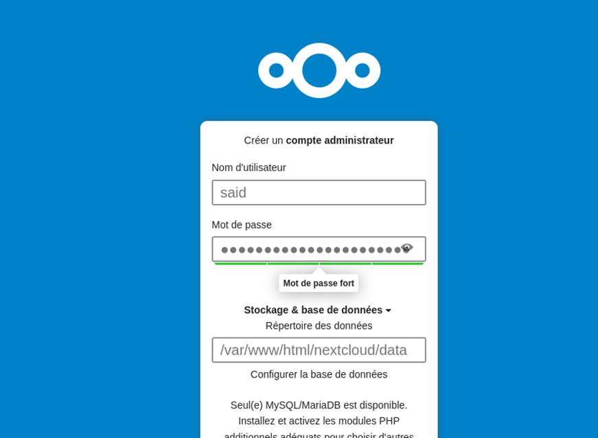 Après avoir saisis vos informations, l’installation de Nextcloud est terminée.