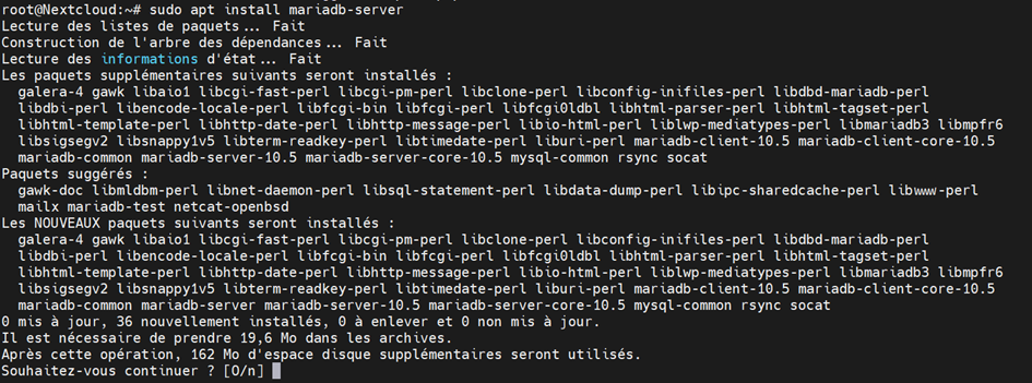 Enfin on va créer une base de données nextcloud et un utilisateur :
