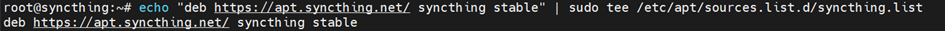 echo "deb https://apt.syncthing.net/ syncthing stable" | sudo tee /etc/apt/sources.list.d/syncthing.list