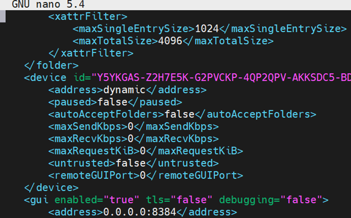 Changez l'adresse 0.0.0.0:8384 par celle que vous souhaitez.