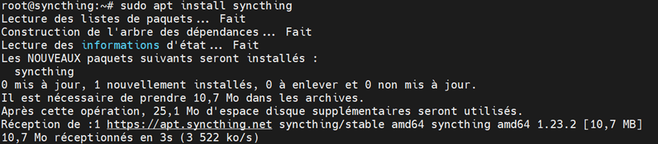 Une fois que nous avons terminé toutes les étapes ci-dessus, nous pouvons enfin procéder à l'installation de Syncthing. Pour cela, exécutez la commande :