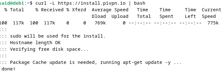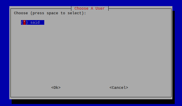Dans mon cas, seul l'utilisateur "said" est configuré sur mon matériel. Vient ensuite l'étape où il faut choisir le mode d'installation, c’est-à-dire le type de service VPN à déployer : OpenVPN ou WireGuard.