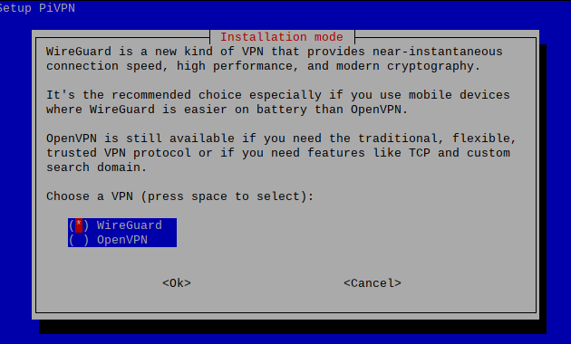 À cette étape, vous devrez choisir entre OpenVPN et WireGuard.