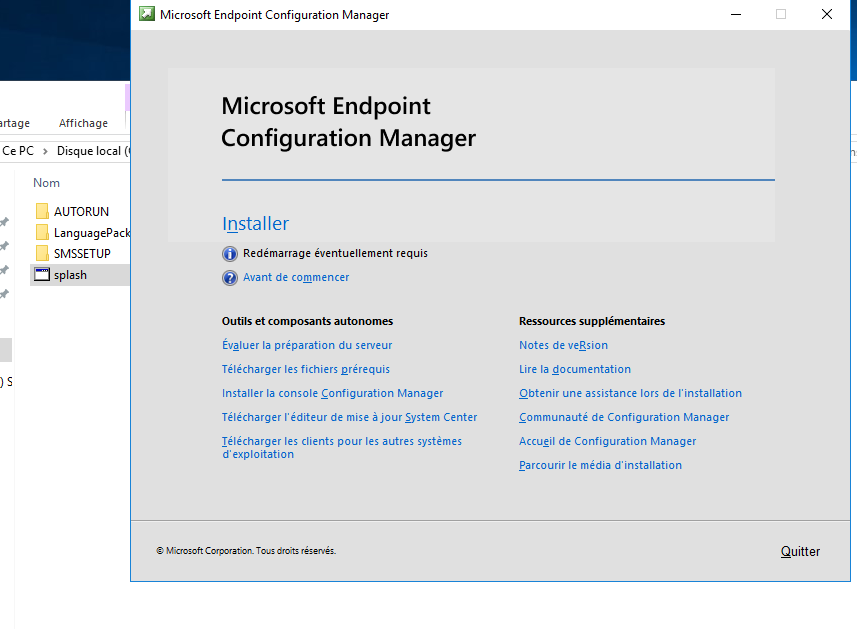 Nous pouvons utiliser l'outil ConfigMgr Prerequisites Tool pour vérifier si des prérequis ne sont pas manquants sur la machine avant l'installation.