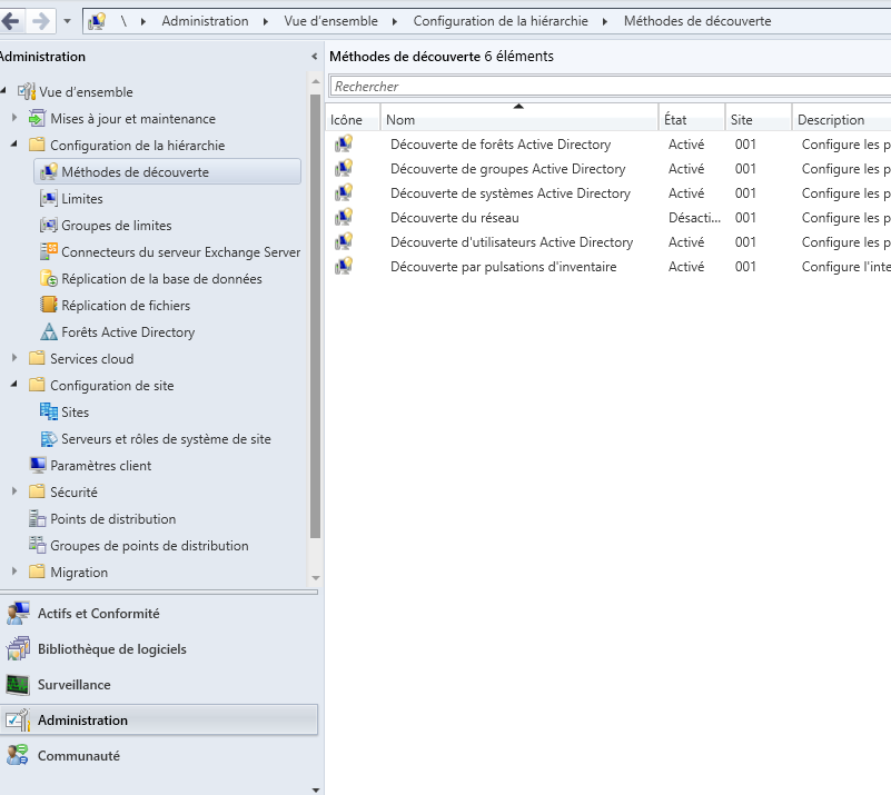 Aller dans Administration > Configuration de la hiérarchie > Méthodes de découverte.