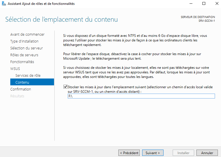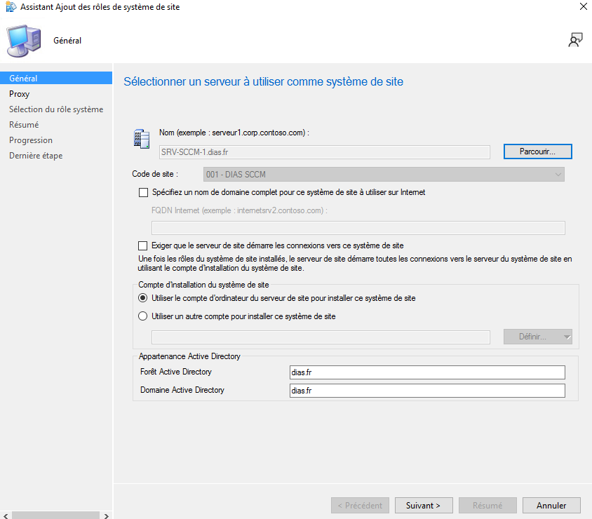 - Préférence de ne pas installer SCCM sur un contrôleur de domaine