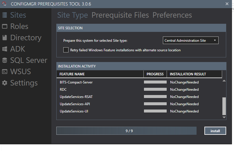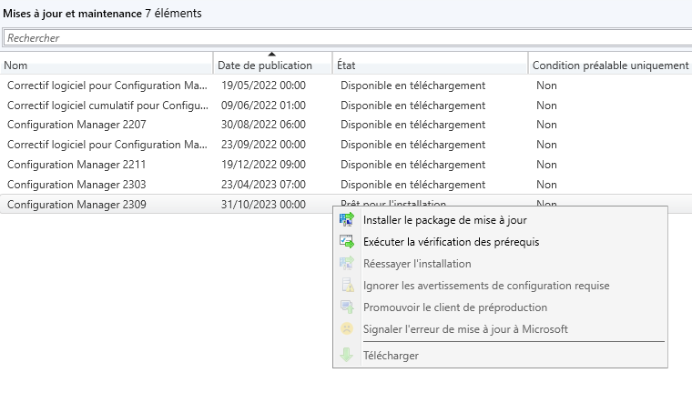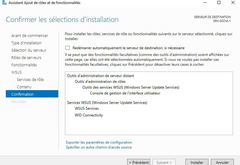 Cet outil permet également la vérification des prérequis logiciels nécessaires au bon fonctionnement de SCCM.