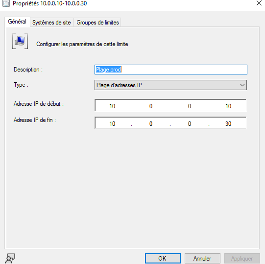 Ajouter une nouvelle limite en spécifiant une plage d'adresses IP, un sous-réseau ou un site Active Directory.