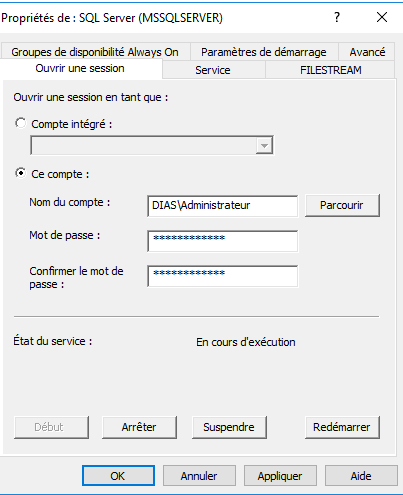 Parcourir puis mettre le compte administrateur et son mot de passe